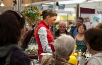Es gibt die Menschen hinter und vor den Ständen, die ihre Region, die Spezialitäten ihrer Region und ihre Einrichtungen oder Organisation vorstellen wollen. Sie wollen ihre Region oder ihr Marktsegment bekannter machen. So z.B. die äußerst charmante Weinkönigin Lena aus Schriesheim, die zusammen mit ihren beiden Prinzessinnen Werbung für den Bergsträßer Wein macht. Weinkönigin wird man nicht so im Vorbeigehen. Man muss die Jury in einem Auswahlverfahren überzeugen. Das ist unserer Lena offenbar gelungen. Für ein Jahr ist sie die Weinkönigin, danach folgt ihr eine der beiden Prinzessinnen. Da ist aber auch der Verkaufsleiter der Winzerkellerei Wiesloch, die vorzügliche Weine in ihrem Sortiment hat.