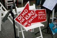 aten statt Worte. KünstlerInnen können von Ankündigungen alleine nicht leben. Viele KünstlerInnen sind in eine Notlage geraten und können sich ihre Miete und ihr Essen nicht mehr leisten. Deshalb forderten zahlreiche Besucher und Künstler bei der Demo vor Ort, ein Bedingungsloses Grundeinkommen, sowie die Soforthilfe aller Kunst und Kulturschaffenden in Österreich. Die soziale Lage der Kunstschaffenden war schon vor der Krise vielfach bestürzend und Corona hat dies noch verschärft. Als Redner auf der Bühne sprachen u.a Schauspieler und Kabarettist Josef Hader, Kabarettistin Guggi Hofbauer, Andrea Eckert (Schauspielerin / Intendantin). Mit dem Auftritt des Roma-Musikers Harri Stojka, endete die Kundgebung.