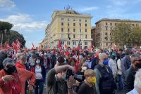 Nach dem Angriff auf das Hauptquartier der italienischen Gewerkschaft CGIL durch faschistische Gruppen und Gegner des Covid19-Impfstoffs fand am 16. Oktober 2021 in Rom eine große antifaschistische Demonstration statt. "Nie mehr Faschismus" war der Titel der Initiative der Gewerkschaften CGIL, CISL und UIL mit den Mitte-Links-Parteien.