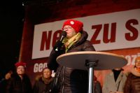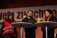 Der immer stärker werdende Rechtsruck Europas, ist ebenfalls Thema auf der Demo. Zahlreiche originelle transparente, wie etwa Nein zu "Schwarz-Blau„ wurden auf der Demo gesichtet. Ebenfalls auf der Kundgebung, die Omas gegen Rechts um Gründerin Monika Salzer die ein Ständchen für die Demonstranten sangen.Trotz Regen und Kälte zogen die Demonstranten, vom Wiener Karlsplatz zum Heldenplatz und wieder Retour, wo gegen Ende noch Austro Rapperin Yasmo ein paar Songs zum Besten gab. Besondere Vorfälle gab es auf der Demo, laut Polizei keine.