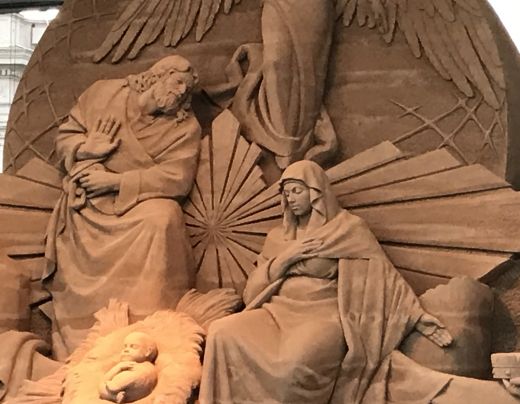 Dieses Jahr die Krippe in Sankt Peters Platz wurde aus dem Sand geformt, der aus der Badeortstadt Jesolo (Venedig) stammt. Die Stadt Jesolo die Sandkrippe seit 2002 organisiert. Die Krippe ist eine Überlieferung von Franz von Assisi. Der heilige Franz von Assisi, kam in der Vorweihnachtszeit des Jahres 1223 auf die Idee, in den Bergen Umbriens ein neues Bethlehem zu errichten.