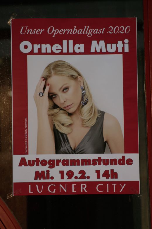 Die italienische Schauspielerin wurde von Lugner kurzfristig für den Opernball engagiert, nachdem Lindsey Vonn abgesagt hatte. Ihr machte das nichts das sie nur Ersatzgast ist, sie bedankte sich mit den Worten: Ich danke Lindsey Vonn, dass ich hier sein kann.Gegen 14.00 war es dann endlich soweit und Filmdiva Ornella Muti, traf gemeinsam mit Richard Lugner in der Lugner City ein und stellte sich zahlreichen Besuchern für eine Autogrammstunde zur Verfügung. Sie begeisterte in Filmen wie Viva Italia oder dem Skandalfilm der 70iger Jahre die Letze Frau mit Gerad Depardiau genauso wie die Besucher heute in der Lugner City.