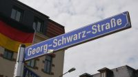 Die heutige Hauptverkehrsader im Westen von Leipzig, die Georg-Schwarz-Straße entstand 1933 und verbindet die Stadtteile Lindenau und Leutzsch. Von den etwa 180 Wohn- und Geschäftshäusern entlang der Strecke zwischen Merseburger Straße und Pfingstweide stehen 137 Gebäude unter Denkmalschutz. Sie hat eine Länge von 2.612 Metern.
