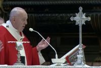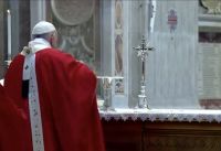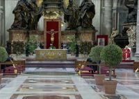 Heutzutage feierte Papst Franziskus die Palmsonntagsmesse ohne Pilger im Petersdom in Rom.