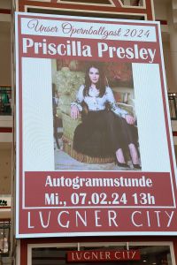 So viele Besucher wie noch nie waren heute (7.2. 2024) in die Wiener Lugner City gekommen, zur Autogrammstunde vom diesjährigen Opernballgast Priscilla Presley. Ebenfalls anwesend die Gastgeber Richard Lugner samt Tochter Jacky Lugner und Mister und Miss Vienna 2024 die den Baumeister heuer auch zum Opernball begleiten. Zur Einstimmung spielte die Musikkapelle Deutschmeister auf. Gegen 13.00 war es dann endlich soweit und die Presley Witwe traf in der Wiener Lugner City ein. Gut gelaunt stellte sie sich einem kurzen Interview mit dem Moderator und begann dann mit dem Signieren.