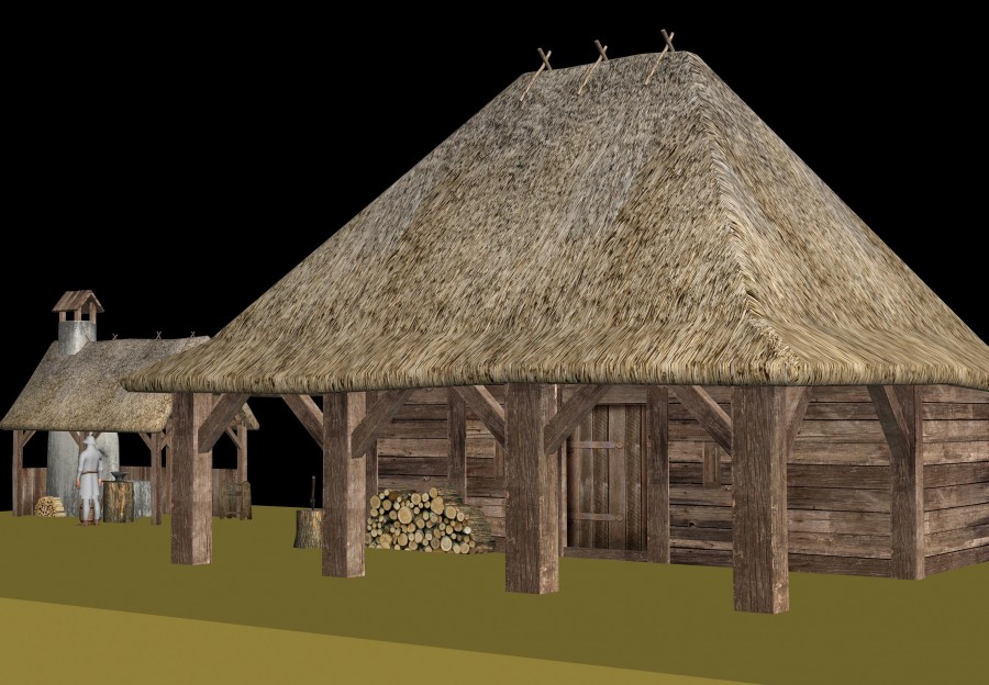 In der Brandschicht des Hauses Nr. 13 wurden verschiedene Metallgegenstände, Fragmente von Haushaltswerkzeugen, Messern, Sporen und ein Pflug gefunden. . Es deutet einiges darauf hin, dass seine Funktion mit der Be- und Verarbeitung von Metallen, hauptsächlich von Eisen, zusammenhängt. Auch deuten ein Laubengang und gleichzeitig in der Wand befestigte Eisenanker auf das Anbinden von Tieren. Wurden hier vielleicht sogar Pferde beschlagen ? Die Antwort auf diese Frage wird sich hoffentlich bei zukünftigen Grabungen ergeben, wenn gezielt nach Objekten im Zusammenhang mit metallurgischen Anlagen / Werkstätten gesucht werden soll.