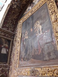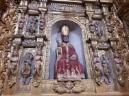 Das Portal ist ein Triumph der Dekorationen und Skulpturen, mit biblischen Themen: In der Lünette ist die Jungfrau mit Kind und zwei Engeln thronend dargestellt; im Architrav ist das Abendmahl dargestellt. Neugier: Die Wappen - Die drei Embleme stammen aus dem Jahr 1550. Der in der Mitte steht der Kaiser Karl V. von Habsburg; rechts der Dekan Vincenzo de Salazar und links der Vizekönig Pietro da Toledo. Diese Embleme wollten vom Dekan V. Salazar öffentlich demonstrieren, dass nur der Kaiser einen Dekan ernennen könne. §§§§