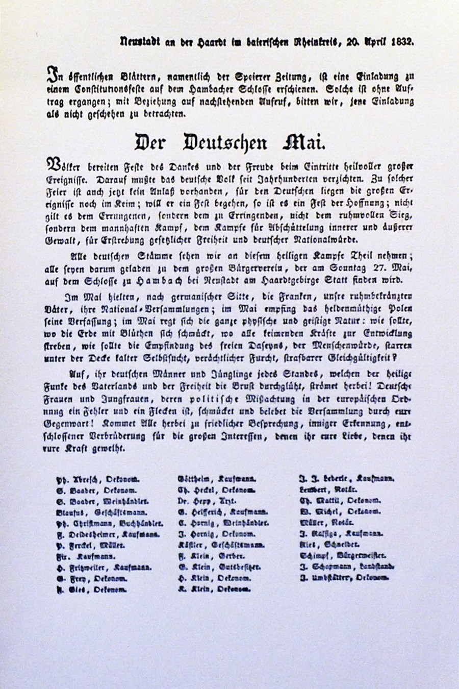 Im 9./10. Jahrhundert befand sich am jetzigen Standort des Hambacher Schlosses eine Burgruine. Auf den Überresten der Ruine entstand um die Jahrhundertwende 1100 die Kästenburg. Besitzer war die Speyerer Kirche. Im Verlauf des Bauernkriegs wurde die Burg besetzt und ausgeplündert und im 2. Markgrafenkrieg stark beschädigt. Nach dem Dreißigjährigen Krieg zerstörten französische Truppen die unbewohnte Burg. Nach dem Wiener Kongress ging die Ruine in den Besitz des Königreichs Bayern. 16 wohlhabende Bürger aus der Region ersteigerten die Kästenburg schließlich für 625 Gulden. Das war der Beginn der Verwendungsform der Burg bzw. des Hambacher Schlosses, wie die neuen Besitzer sie fortan nannten , als Veranstaltungsort. Begonnen hat es mit politischen Kundgebungen.