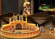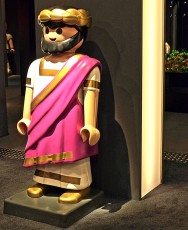 Einmalig und sehr beeindruckend. Der Untertitel der Ausstellung lautet: Eine Abenteuerreise durch die Zeit. Die PLAYMOBIL-Welten zeigen auch Szenarien der Geschichte und Kulturgeschichte. Die Steinzeit, das römische Reich und das Mittelalter werden in Themenbereichen dargestellt. Und darin liegt ein weiteres Geheimnis für den Erfolg der Figuren. Das fantasievolle Rollenspiel mit alltäglichen und historischen Themenwelten wird pädagogisch wertvoll eingeschätzt. Die PLAYMOBIL-Geschäftsführerin Andrea Schauer stellt stolz fest:“ PLAYMOBIL ist ein Phänomen, das mindestens schon die zweite Spielgeneration in Bann zieht.“ Mit dazu trägt sicherlich auch dazu bei, dass die PLAYMOBIL-Figuren praktisch unzerstörbar sind. Begonnen hat alles 1974 auf der Nürnberger Spielwarenmesse. Seit 40 Jahren sind die Figuren nicht wegzudenken, Glückwunsch zum Jubiläum.