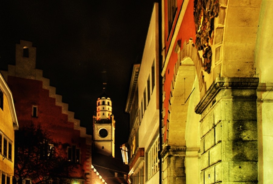 Die Keimzelle Ravensburgs ist mit großer Wahrscheinlichkeit die heutige Veitsburg. Die um das Jahr 1050 erbaute Ravensburg ( später in Veitsburg umbenannt ) war als Stamm- und Fluchtburg auf dem Höhenrücken zwischen Flappach- und Schussental Sitz der Welfen. Die Burg diente in ihrer ursprünglichen Fassung als Namensgeber für die Stadt. Die Ursprünge der Stadt Ravensburg liegen auf halber Höhe unterhalb der in Veitsburg. Die Siedlung besaß das Marktrecht und wurde 1276 zur Freien Reichsstadt erhoben. Handel und Gewerbe spielten schon immer eine große Rolle bei der Stadtentwicklung. Die Wirtschaft im 14.Jahrhundert boomte so stark, dass die Stadtmauer zwischen Stadtkern und Unterstadt eingerissen wurde. Die Unterstadt wurde in die Stadtbefestigung einbezogen.