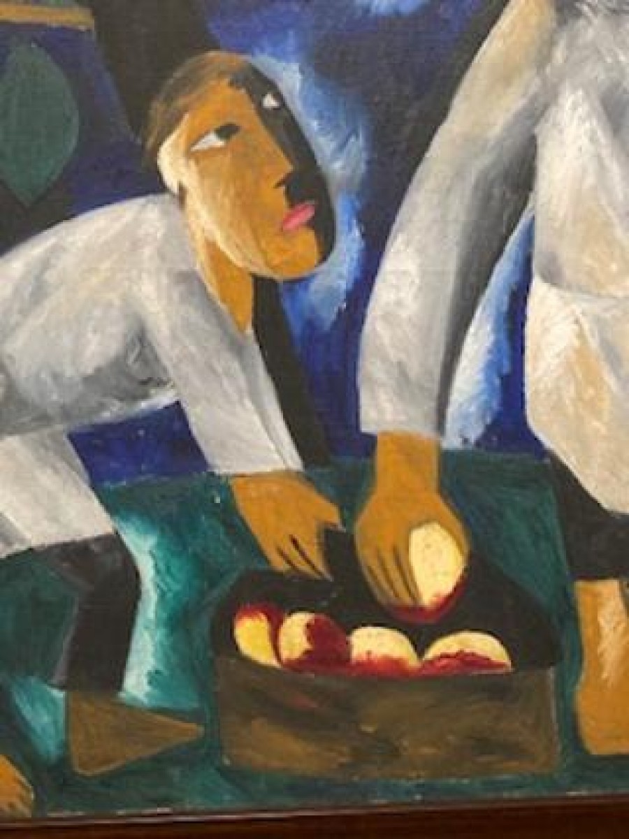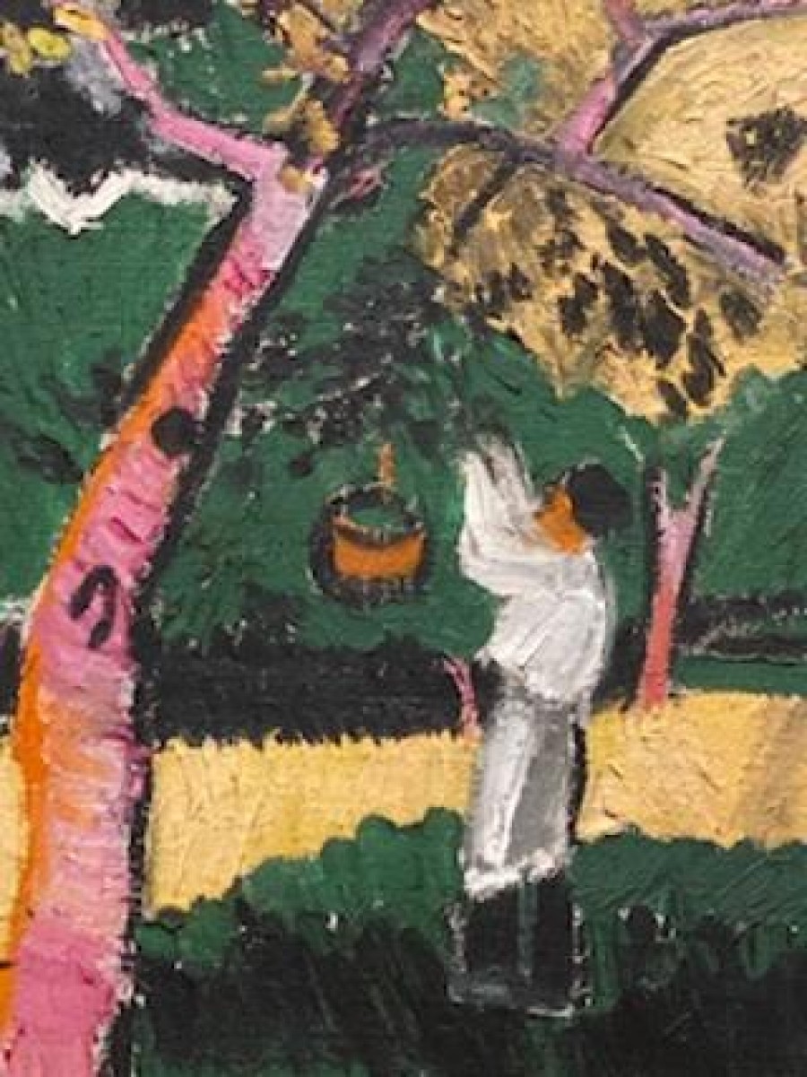 Gontscharowas Gemälde hinterlassen sofort einen gewalttätigen und unmittelbaren Eindruck. Die Künstlerin scheint mit den sinnlichen Qualitäten der Malerei und dem Rhythmus der Linien zufrieden zu sein. Es ist ein vielseitiges Werk par excellence, in dem der Einfluss von Cézanne, Van Gogh, Matisse und Picasso deutlich wird. Goncharovas Interesse an Ikonen gehört zu ihrer Jugendzeit (1903-1905). Die Exemplare dieser Zeit zeigen die leuchtenden Farben, die typisch für das reife Schaffen des Künstlers sind. Die Vorliebe für Ornamente wurde fast zu einem Gegenstand wissenschaftlicher Untersuchungen und bildet zusammen mit Ikonen den wichtigsten eigenständigen Beitrag zur modernen Bewegung in Russland. Gontscharowas Gemälde von 1910-12 waren die direkte Quelle, von der Kazimir Severinovič Malevič in dieser Zeit inspiriert war.